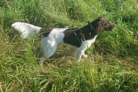It all started 12/31/2015 when I picked him up at 10 weeks old. I hadn’t even heard of the Small Munsterlander breed until October of 2015. While in ND on a duck hunting trip, without my own dog, I mentioned to my hunting buddy, I need to get my own dog and that I wanted a pointing breed. He mentioned that his nephew had just gotten a new pup, a Small Munsterlander. I got home after that trip and started doing research on the Small Munsterlander. The more I researched the more intrigued I became with the breed. Made the decision this is the breed I wanted and started looking at breeders and who had puppies available.